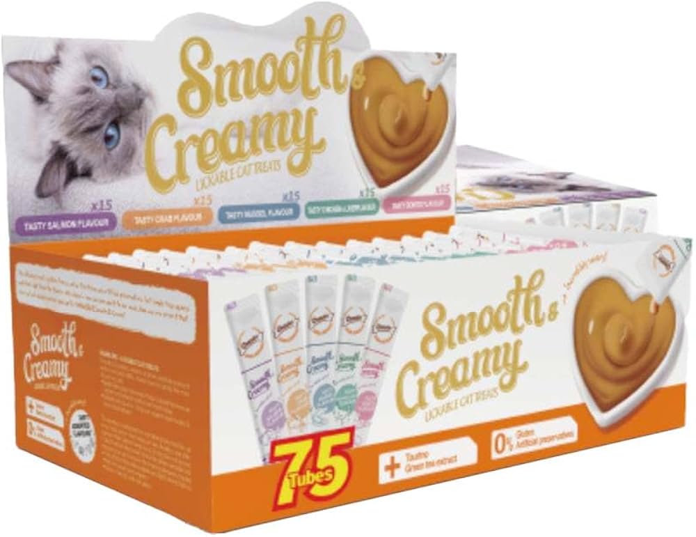 The Cat Creamy Treats Small Box – 75 Tubes is an extra-large variety pack designed for cats who love frequent rewards or households with multiple feline friends. With 75 lickable creamy-treat tubes, the pack ensures plenty of snacking options without frequent restocking. Each tube delivers smooth, tasty puree that cats enjoy — great for training, bonding, or daily treats. The compact box format helps store and organize tubes neatly, making it easy to hand out treats whenever you want. Perfect for cat lovers who like to spoil their pets generously.