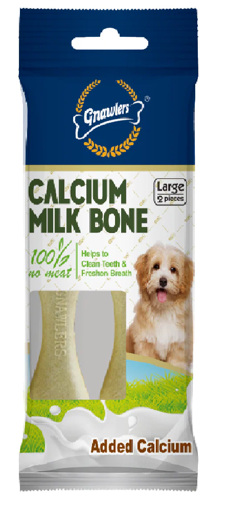 Gnawlers Calcium Milk Bone (3″/4″) in a 110 g pack containing 2 bones is a premium chew treat designed for dogs. Each bone is enriched with calcium and milk nutrients to support strong teeth and healthy bone growth. The firm, chewy texture satisfies natural chewing instincts and can help reduce plaque buildup, aiding dental hygiene. Ideal for small to medium dogs, this 2-in-1 pack offers convenience for occasional rewards or training snacks.