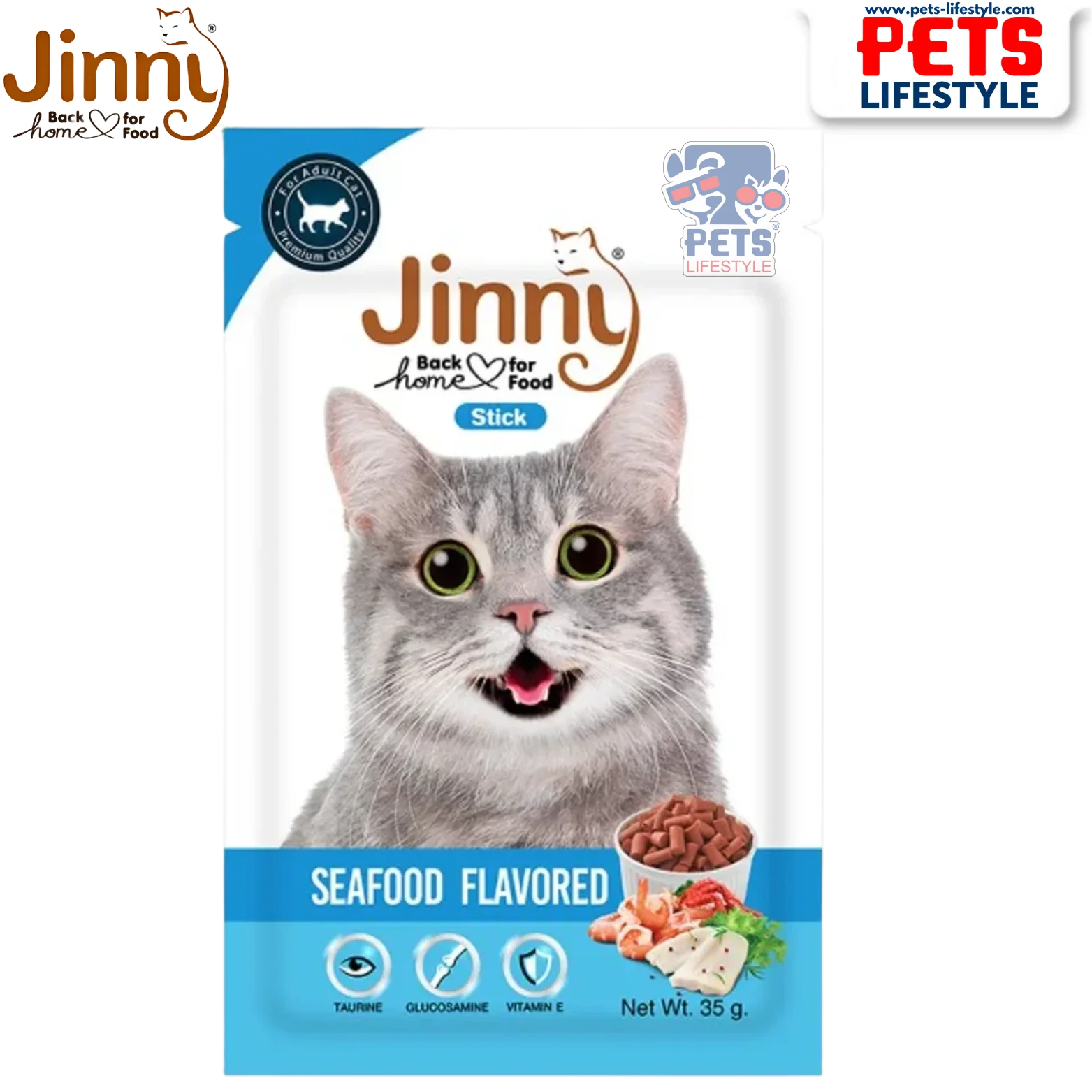 Jinny Seafood cat treats combine real chicken with a rich blend of seafood flavors, offering a savory and nutritious snack. Infused with taurine for eye and heart health, vitamin E to combat free-radical damage, and inulin to support digestion. It also includes glucosamine and chondroitin to benefit joints and bones. Soft, chewy, and highly palatable — perfect for training or bonding moments.