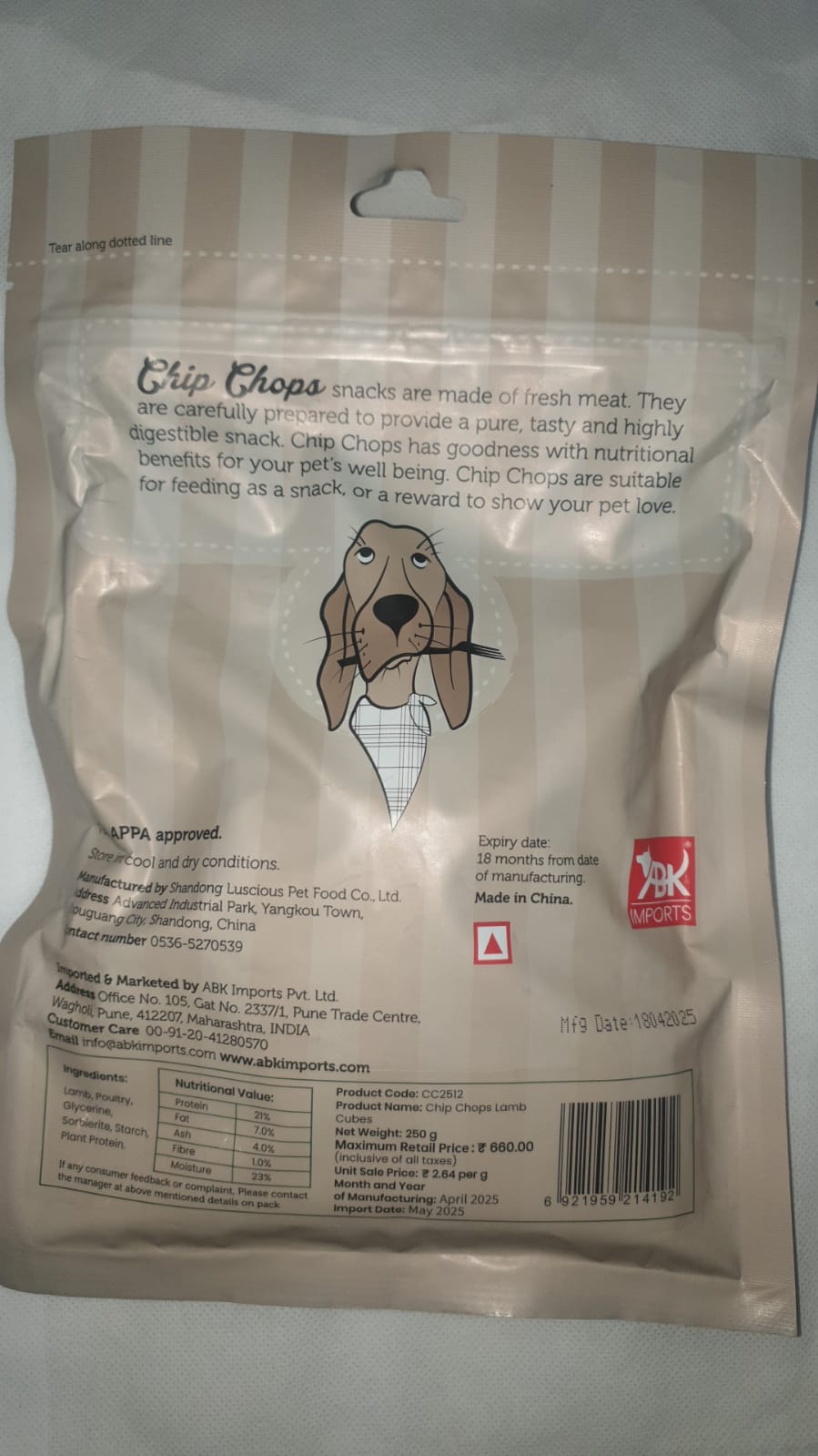 Chip Chops snacks are made of fresh meat. They are carefully prepared to provide a pure, tasty and highly digestible snack. Chip Chops has goodness, with nutritional benefits for your pet’s well being. Chip Chops are suitable for feeding as a snack, or a reward to show your pet love.