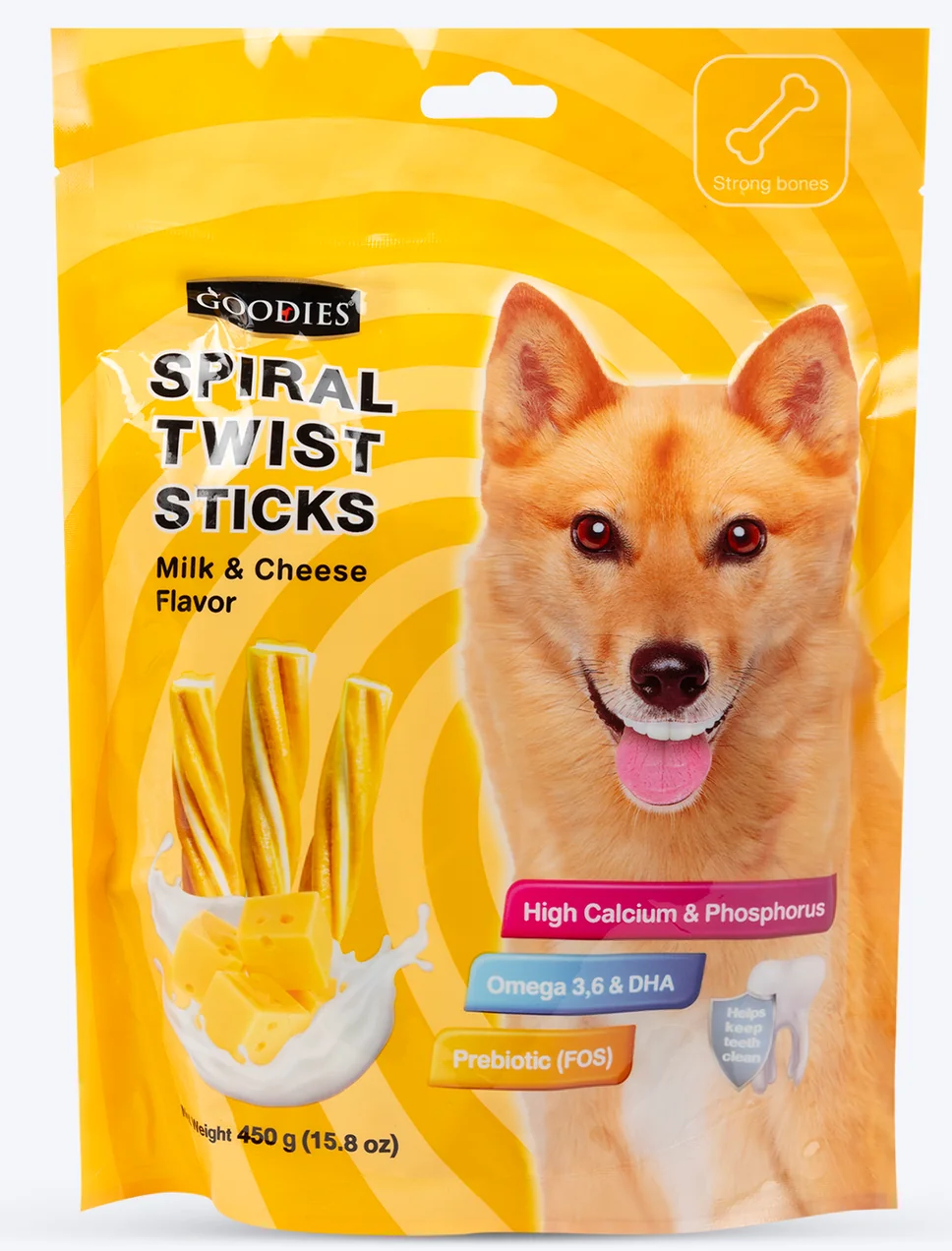 Spiral Twist Sticks (450g) Milk & Cheese are delicious chew treats crafted to keep your dog happy and healthy. Made with the rich taste of milk and cheese, these twisted sticks encourage longer chewing, helping support dental hygiene by reducing plaque and tartar buildup. Their tasty flavor makes them irresistible, while the chewable texture keeps dogs engaged. Perfect as a reward or daily treat for dogs of all breeds.